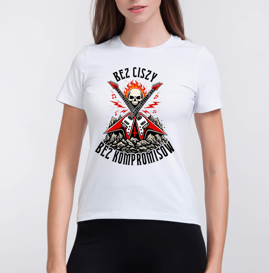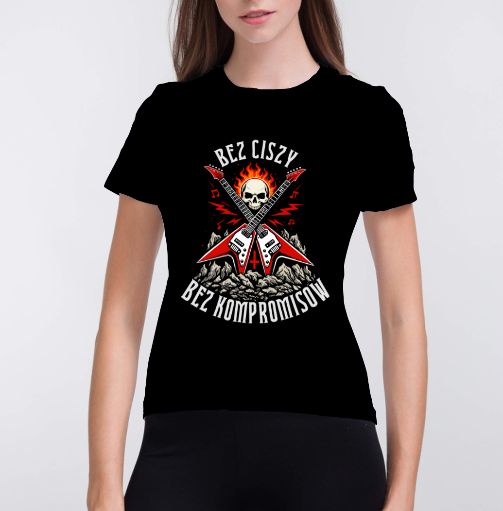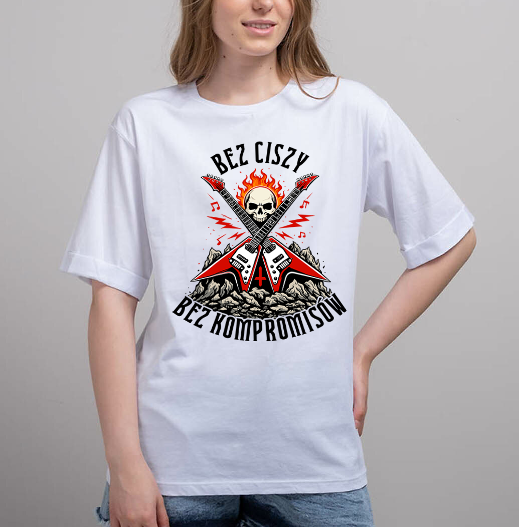 Niektórzy grają, żeby wypełnić tło. Ty grasz, żeby zdefiniować moment. Ta koszulka to manifest każdego, kto nie boi się rozkręcić wzmacniacza na maksimum i iść pod prąd. Hasło „Bez ciszy. Bez kompromisów” mówi wszystko o Twoim podejściu do muzyki i życia. To energia, której nie da się wyciszyć. Wysokiej klasy bawełna przetrwa niejeden mosh pit i setki godzin ćwiczenia riffów. Materiał jest trwały, ale miękki w dotyku.