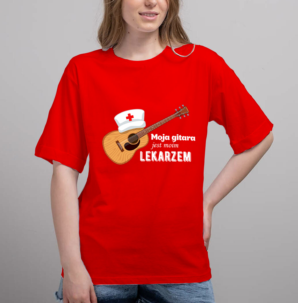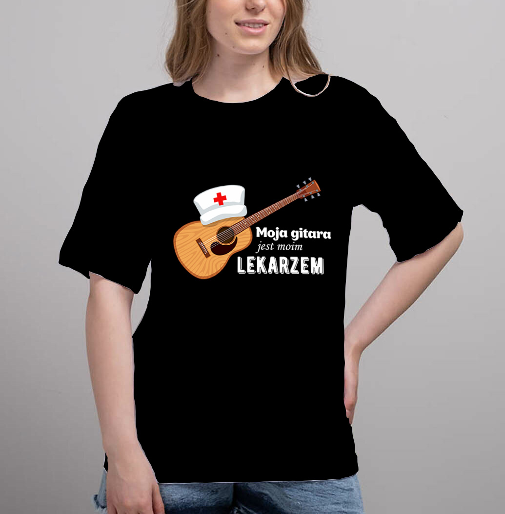 Kup koszulkę Moja gitara jest moim lekarzem! Nie czekaj – pozwól muzyce grać i zdobądź swoją już teraz!