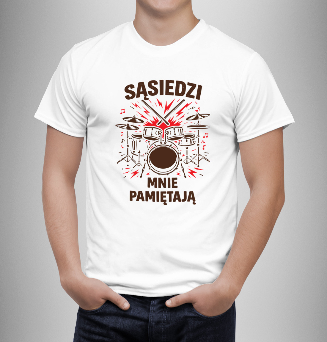 Twój perkusista ma fanclub, o którym nawet nie wie? Sąsiedzi z dołu znają każdy jego rytm, a ci z góry wybijają tempo miotłą o sufit? Ta koszulka to oficjalny mundur każdego domowego wymiatacza, który wie, że trening czyni mistrza, a cisza nocna to pojęcie względne.