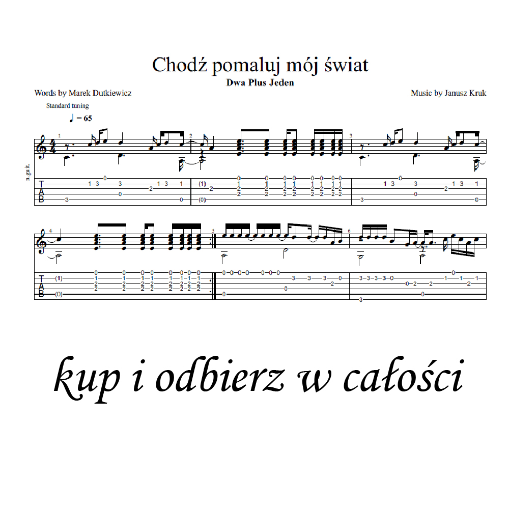 Posłuchać – Nuty i tabulatura Chodź pomaluj mój świat