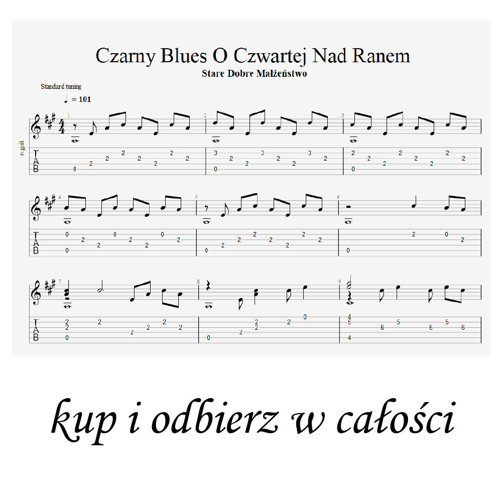 Po zakupie nut i tabulatur do utworu „Czarny Blues O Czwartej Nad Ranem” otrzymają Państwo:
